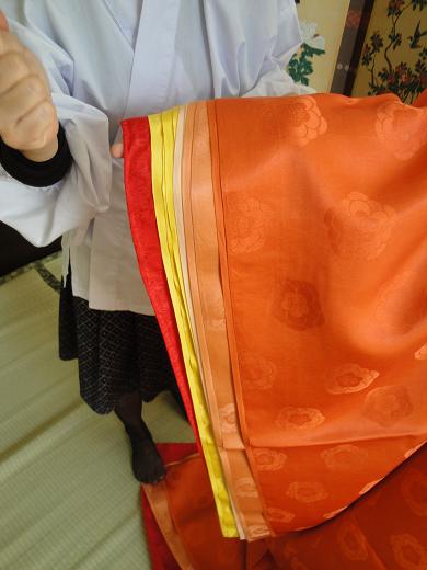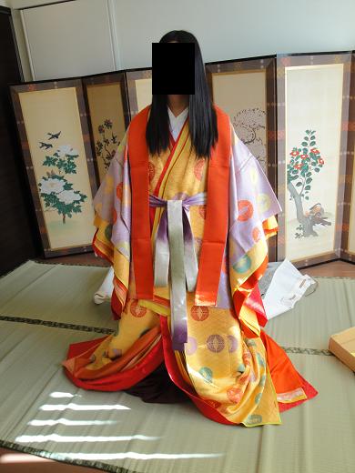 時間は無制限で、着方の要望にも応えて下さるし、いろんなポーズや袿だけの写真を撮れたり、専門的な話をしたり本を見せてくださったりと、