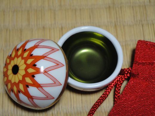 薄く塗ってある感じ。 黒いけど、濡らした筆で溶かすと真っ赤になるんだよー