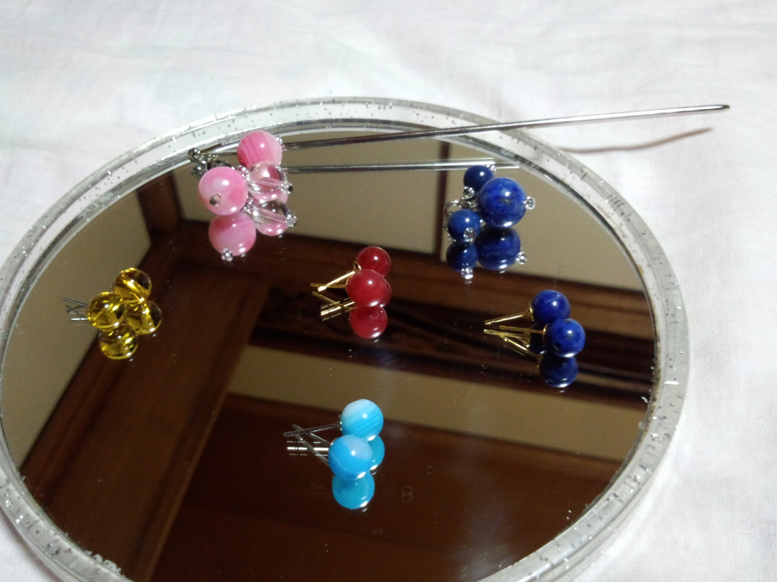 応用でピアスを作ったり、簪を作ったりいろいろしました。